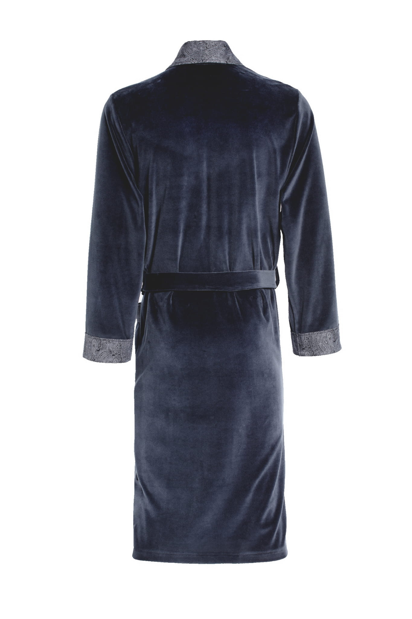 Elegancki welurowy szlafrok o klasycznym kroju. Zastosowana dzianina bawełniana odznacza się bardzo dobrymi parametrami użytkowymi, wygodna w noszeniu nie kurcząca się w praniu. Szlafrok posiada znaczny zakład co pozwala dopasować obwód pasa do wielu sylwetek. Produkt starannie wykonany, spełnia najwyższe normy jakościowe - świetnie sprawdzi się w domu, szpitalu, SPA itp.